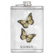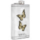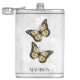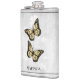 Aproveite as suas bebidas alcoólicas favoritas a qualquer momento com um Dourado frasco de Vinilo Floral de Borboleta. O design de fenda apresenta um par de borboletas vibrantes que repousam sobre uma vinha floral branca contra um fundo de cinza claro. Itens de presentes adicionais disponíveis com este design também.