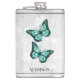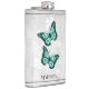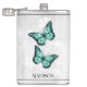 Aproveite as suas bebidas alcoólicas favoritas a qualquer momento com um frasco de vinilo embebido em álcool borboleta teal. O design de fenda apresenta um par de borboletas vibrantes que repousam sobre uma vinha floral branca contra um fundo de cinza claro. Itens de presentes adicionais disponíveis com este design também.