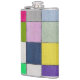 Um frasco metálico com um vibrante design de grade geométrica de doze quadrados coloridos. Com tons de rosa, azul, verde, amarelo, roxo e cinza, este frasco moderno combina praticidade com estilo artístico. Perfeito para carregar bebidas de forma elegante, adicionando um toque criativo aos itens essenciais do dia a dia.