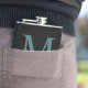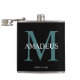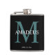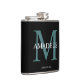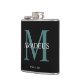 Elegante Monogrammed Padrinhos de casamento Black Flask Um maravilhoso obrigado que você oferece para um padrinho de casamento. Mala esbranquiçada, elegante, preta com um primeiro nome monograma e grande primeiro letra turquesa de primeiro ou sobrenome atrás dela.