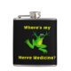 O Froggy Nerve Medicine Flask apresenta um sapo estressado, com o texto "Onde está meu nervo medicinal?" Personalize o texto conforme desejado. Faz um presente excelente para aniversários, Natal e outras ocasiões especiais.