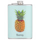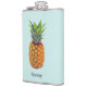 Linda fruta de abacaxi sobre fundo azul claro. Nome do texto pronto para ser personalizado.
