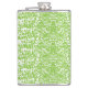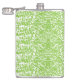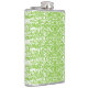 O design apresenta um fundo de verde limão vibrante sobreposto com um design branco abstrato. As formas irregulares e os estilhaços criam um padrão dinâmico, semelhante a camuflagem. Embora não haja números perceptíveis, essa design pode ser relevante para projetos de moda ou gráficos