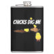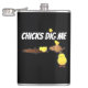 Jogo de palavras com o ditado "As garotas me digam", significando um homem que se autodenomina conquistador, mas fazendo piada com o ditado com o uso literal inocente de galinhas cavando