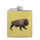 Uma pintura digital do bison americano, ou búfalo, sobreposta a uma imagem de fundo em couro bronzeado. O bison (Bison bison), o maior mamífero terrestre da América do Norte, é considerado uma espécie-chave: já vagaram pelo continente em rebanhos de excelente, e sua pressão de pastagem ajudou a moldar a ecologia das planícies Excelentes. Foram descritas duas subespécies ou ecótipos: a bisão (bison bison bison), de tamanho menor e com uma corcova mais arredondada, e a bisão de madeira (Bison bison athabascae) - a maior das duas e com uma corcova quadrada mais alta. O bison é um relativo recém-chegado à América do Norte, tendo se originado na Eurásia e migrado pelo estreito de Bering Há cerca de 10 mil anos substituiu o bisão-estepe (Bison priscus), um imigrante anterior que era muito maior. Pensa-se que a bisão de estepe se extinguiu devido à mudança do ecossistema e à pressão da caça na sequência do desenvolvimento do ponto de Clovis e da tecnologia conexa, e à melhoria das capacidades de caça. Nesse mesmo período, outras megafaunas desapareceram e foram substituídas até certo ponto por animais eurasiáticos imigrantes mais bem adaptados aos humanos predadores. O bisão existente, tecnicamente uma forma anã, foi um desses animais. Estima-se que houve 20-30 milhões de bisontes, também chamados de búfalos, em roaming na América do Norte. O seu alcance, em tempos, incluía aproximadamente um triângulo entre o Excelente Bear Lake, no extremo noroeste do Canadá, a sul, e os estados mexicanos de Durango e Nuevo León, e a leste, ao longo da fronteira ocidental das montanhas Appalachian. As primeiras vias férreas da América do Norte, com exceção dos caminhos obliterados de mastodonte ou de musko, foram os traços feitos por bison e veado na migração sazonal e entre os campos de alimentação e os lamaçados salinos. Muitas destas rotas, marteladas por inúmeros cascos instintivamente a seguir a bacias hidrográficas e as cristas de serras para evitar a lama de verão e as derivas de neve de inverno em lugares baixos, foram seguidas por Americanos nativos e foram inestimáveis para os exploradores. O termo "búfalo" pode ser considerado um erro para este animal, uma vez que está apenas distantemente relacionado com qualquer um dos "verdadeiros búfalos", o búfalo asiático e o búfalo africano. No entanto, "bison" é uma palavra grega que significa "animal parecido com boi", enquanto "búfalo" se originou com os caçadores franceses de peles que chamavam estes boeufs gigantes de bestas, que significam bois ou bullock - por isso ambos os nomes, "bison" e "búfalo", têm um significado semelhante. Em relação a esse animal, o termo "búfalo", que data de 1635, tem uma história muito mais longa do que o termo "bison", que foi registrado pela primeira vez em 1774. O bisão americano está mais relacionado ao bisão sábio ou europeu. A caça não regulamentada de bisão, que culminou em abates em massa nos anos 1870, reduziu a população para 1.091 em 1889. Hoje, cerca de 500.000 bisontes vivem na América do Norte. A maioria não é pura bisão, mas as preferencialmentes foram cruzadas com bovinos no passado e são criadas como gado em fazendas. Menos de 30.000 bisontes estão em manadas de conservação, e menos de 5.000 estão livres e livres de doenças. Hoje, bisontes estão ecologicamente extintos ao longo da maior parte de sua faixa histórica, exceto alguns parques nacionais e outras pequenas áreas de vida selvagem. O Parque Nacional de Yellowstone tem a maior população de bisão de planícies de roaming livre (cerca de 4.000), e o Parque Nacional de Buffalo de Madeira tem a maior população de bisão de madeira de roaming livre (cerca de 10.000). Um bison tem um casaco de inverno marrom, comprido e escuro, e um peso mais leve, casaco de verão marrom mais claro. O casaco de inverno é tão grosso e bem isolado que a neve pode cobrir as costas sem derreter. O bison masculino é ligeiramente maior que as mulheres. O bisonte das planícies pesa normalmente de 700 a 2.200 lbs. O maior touro selvagem já registrado pesava 2.800 lbs. Quando criado em cativeiro e cultivado para carne, o bisão pode crescer de forma não natural pesada e o maior bisonte semimdoméstico pesava 3.800 lbs. As cabeças e os quartos dianteiros são maciços, e ambos os sexos têm cornos curtos e curvos que podem crescer até 2 pés de comprimento, que usam para lutar pelo status dentro do rebanho e pela defesa. Bison são herbívoros, pastando nas gramíneas e bordas das pradarias norte-americanas. O seu calendário diário envolve períodos de duas horas de pastoreio, repouso e mastigação em cud, passando depois para um novo local para pastar novamente. Este movimento regular garante que bison raramente invade uma área. Bison frequentemente esfrega e rola no chão criando depressões ricas e como discos chamados wallows. Rolo de bisonte em wallow, wet or dry, cobrindo-se com pó ou lama. As explicações passadas e as hipóteses atuais sugeridas para o comportamento ao engolir incluem o comportamento ao aliciamento associado à desmoronamento, a interação homem-homem (normalmente o comportamento ao rubor), o comportamento social para a coesão do grupo, o comportamento ao brincar, o alivio da irritação cutânea devida a insetos picantes, a redução de carraças e piolhos, e a termorregulação. Ondas eram uma característica comum das planícies. No inverno, bison pode cavar por uma neve profunda com suas cabeças para alcançar a vegetação abaixo. Bison tem visão fraca, mas tem audição aguda e um excelente olfato. Bison pode alcançar velocidades de até 35 mph. Bison tem uma expectativa de vida de aproximadamente 15 anos na natureza e até 25 anos em cativeiro. Bison mate no final da primavera e no verão em áreas mais abertas. Durante o outono e o inverno, bisão tende a se reunir em mais áreas arborizadas. Durante esse tempo, bison compensa em comp