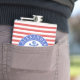 NewparkLane - design moderno, garrafa personalizada, com um teste padrão listrado vermelho e uma âncora dos azuis marinhos em um quadro circular azul. Fácil personalizar com sua cidade conhecida e favorita. Todo o estilo do texto, cores, tamanhos pode ser alterado para caber suas necessidades.