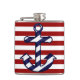 A garrafa para o marinheiro ou o "yachtsman" tem uma âncora listrada azul e branca em listras vermelhas e brancas.
