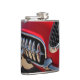A grade distintiva e as luzes principais de um Chevrolet Corvette 1954 brilhante. Toda vermelho e brilhante no sol do verão pronto para uma movimentação do divertimento no país ou ao longo da praia.