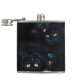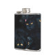 Um grupo de felinos pretos agrupados em uma grande poça em um andar branco e preto
