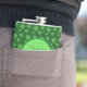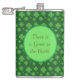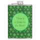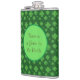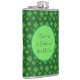 Texto engraçado e trevos verdes de quatro folhas em um frasco de fundo verde. O texto do Gênio na garrafa pode ser personalizado.