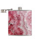 Cristais e bandas cor-de-rosa e branco nesta fotografia de um geode.