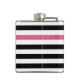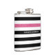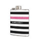 Personalizar este frasco de listras preto e branco, horizontal e moderno, molhado em vinil, com uma listra de brilho rosa-quente, acrescentando o nome de qualquer rapariga feminina. Este padrão gráfico de tendência é perfeito para a moda chic. Imagem impressa plana, NÃO brilho real.