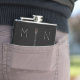 Frasco de guitarra acústico em fundo preto. Com letras brancas simples, você pode personalizar com suas próprias iniciais. Um item artístico perfeito para si mesmo ou como presente para o músico na sua vida.