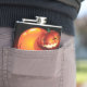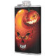 Crânio assustador e assustador do Halloween e Jack O'Lantern Pumpkin no fundo negro. Design Copyright BluedarkArt.