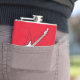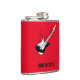 Frasco de anca com guitarra e fundo vermelho. Você pode personalizar o nome ou adicionar qualquer texto desejado.