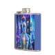 Uma forma humana brilhando se coloca num pano de fundo dos arranha-céus futuristas, com cores vibrantes e pontos de energia iluminando várias partes do corpo. A paisagem urbana de alta tecnologia reflete as luzes de néon, criando uma atmosfera dinâmica e energética. Digital Art Photoshop CS5