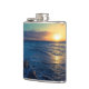 Linha costeira com o pôr do sol no horizonte.