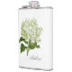 Bonito e feminino, este frasco personalizado apresenta uma impressão em dois lados com uma única flor de hydrangea de cor verde e um nome fácil de editar em uma fonte de letra elevada. Dê como presentes para a festa de casamento, personalizando com o nome de cada senhora ou como um presente para a noiva em sua despedida de solteira e traga um pouco de classe com o estilo.