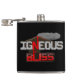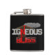 Este frasco de humor geológico apresenta o trocadilho "Igneous is Bliss", um spin geológico na frase comum "Ignorância é Bliss." As letras são desenhadas como rocha cinza e magma vermelho, cristalino, mush abaixo de um vulcão ativo em erupção.