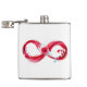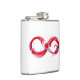 Símbolo infinito do fluxo contínuo de vinho tinto que entra em vidro de vidro sobre fundo branco.