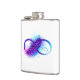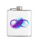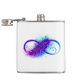 Símbolo do infinito com uma bela pena pintada em cores vibrantes roxas e azuis sobre um fundo branco.