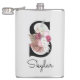 Frasco inicial boho rosa monogramado, presente perfeito para uma despedida de solteira ou outra celebração divertida e feminina. Personalizado com a letra inicial S monogramada e um nome.