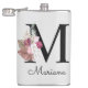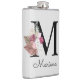 Inicial Monogramada M Rosa Boho Floral frasco inicial, presente perfeito para uma despedida de solteira ou outra celebração divertida e feminina. Personalizado com a letra M monogramada e um nome.