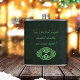 O fundo verde tem o padrão celta do nó, enquanto a torrada irlandesa e o principal nó celta estão em tons de verde. O brinde irlandês: "'ere's ter bein' solteiro, bein' duplles, an’ see’ triple!" ou "Aqui está para ser solteiro, bebendo duplica, e ver triplo!"