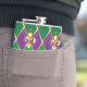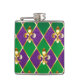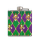 joias, fundo em Mardi Gras de losango roxo e verde, lírios de ouro decorados.