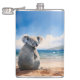Koala sentado numa praia arenosa olhando para o espectador Este coala peludo é um nativo da Austrália que eles são facilmente reconhecíveis pelo seu corpo sem cauda e cabeça grande com orelhas redondas, lisas e nariz grande e em forma de colher.