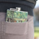 Pierre-Auguste Renoir. La Grenouillère.. uma bela paisagem no rio em tons verdes. Há barcos na costa. No meio do chão, um grupo de pessoas se posiciona em uma passagem por baixo de uma árvore de espalhamento. Ao fundo há yazta e árvores. Reprodução de famosas imagens de arte no dominio público.