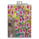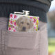 Imaginados em fundo floreado estão três cachorros Labrador em um design de tinta a óleo