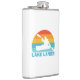 Aventuros visitam a zona do lago Lanier para remar, caminhar, pescar, navegar, ciclismo, acampar, caminhar e escalar. Este design tem um arco-íris e uma canoa.