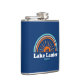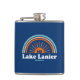 Aventuros visitam a zona do lago Lanier para remar, caminhar, pescar, navegar, ciclismo, acampar, caminhar e escalar. Este design tem um arco-íris e uma canoa.