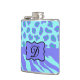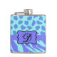 Você vai adorar o carregando da sua bebida alcoólica favorita neste frasco de monograma sofisticado e na moda. A design de arte é uma combinação da popular faixa de zebra animal selvagem africana e padrões de pele de leopardo ou de chita. Este padrão de impressão de lavanda roxa e turquesa--roxa-do-mato-azul ou teal-zebra e leopardo está disponível em várias combinações de cores. Um emblema de lavanda periwinkle em uma faixa de lavanda cria uma área de personalização para seu monograma ou nome. Isso é totalmente personalizável e está disponível em muitos produtos de coordenação nesta loja.