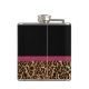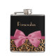 Um elegante frasco de impressão de pelo-leopardo-de-ouro-tawny com uma fita cor-de-rosa-mauve cúbica amarrada num arco de na moda. Personalize esta moda, cor-de-rosa e dourada, cúmplice da moda em qualquer mulher, acrescentando seu nome. Imagem impressa plana, não com pelo ou fita real.