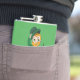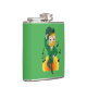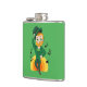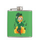 Flask com a Ilustração de um duende sorridente e alegre dançando vestindo um terno verde, uma gravata arco e um chapéu de boliche; com notas pretas e um arco-íris amarelo e laranja em fundo verde. Uma design perfeita para celebrar o Dia de São Patrício!