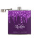 Um fundo roxo profundo. Decorado com gotas de purpurina falsa e efeito de tinta pingando. Personalize e adicione um nome, iniciais de monograma e nome completo. O primeiro nome é escrito com um estilo de letra manuscrita moderna.