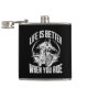 Carry your spirits with a dose of biker pride! This rugged hip flask features a cool skull rider design and the iconic phrase "Life is Better When You Ride". It's the perfect accessory for motorcycle enthusiasts, road warriors, or anyone who lives for the open road. A fantastic gift for bikers, it's ready for your next adventure.