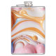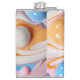 Um fecho de um líquido colorido, espumoso, com pequenas bolhas redondas a flutuar na superfície. O líquido é um azul vibrante com pistas de rosa e roxo.