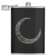 Uma lua de lua de prata brilhante num design de nó celta num fundo preto.