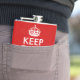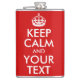 Design de "Mantenha Calma e Texto" personalizável em vermelho e branco.