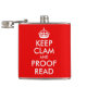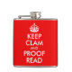 Paródia personalizável "Keep Clam and Proof Read" para professores de inglês. Você pode alterar a cor de fundo.