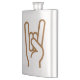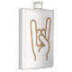 A garrafa projetou com o sinal dos chifres, chifres do metal, engancha-os chifres, mão do metal.