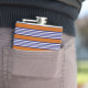 Cantil Marinho, listras brancas e azuis com laranja queim