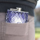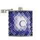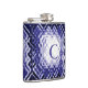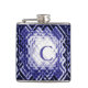 Lembrete, de um tapete ao estilo marroquino, este abstrato, design de monograma, é exibido em brilho, cores de, marinho-azul, lavanda, preto e branco.