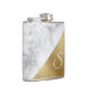 Frasco de na moda bebendo, feito num olhar moderno de mármore branco sobre metade do frasco e do aspecto de folha de ouro, na outra metade. Um monograma branco de uma letra está pronto para personalizar. Uma bela ideia de presente para ela.