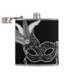 Bela máscara de penas prateada, branca e preta. Balão Mardi Gras. Você pode escolher a cor do plano de fundo e adicionar texto à parte frontal e traseira.