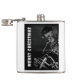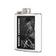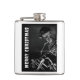 Merry Christmas text can be customized by you. Sad skeleton wearing a Santa hat, sitting on the floor. Black and white artwork.