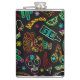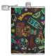 Arte de Linha Alegre e Colorida México Padrão Fiesta, composto por Elementos Típicos como crânios de açúcar, maracas, inca guerreiro, aztec guerreiro, pimenta-do-pirilo, cacto, pirâmide, limão, tequila, sombrero, tacos, camaleão, e alguns elementos florais étnicos e decorativos. Arte vetorial original Copyright BluedarkArt.